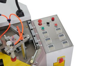 Hình ảnh: Các nút bấm kỹ thuật số - Máy ép góc được thiết kế các hệ thống dao bên trái và bên phải rất chính xác giúp tránh biến dạng trong quá trình ghép nhôm và đảm bảo liên kết giữa các góc cửa trở nên vững chắc, đồng đều và an toàn hơn.