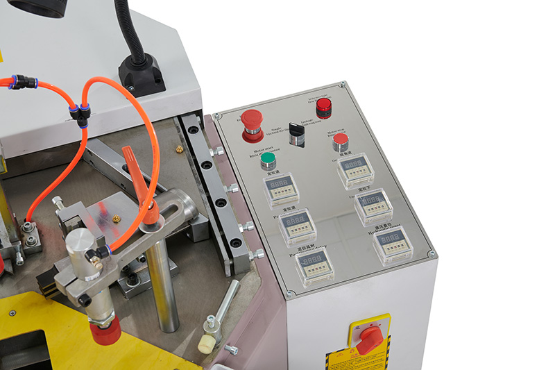 Hình ảnh: Hệ thống mặt trên của máy - Thời gian cho mỗi lần ép góc nhôm không quá 30s nên có thể tiết kiệm thời gian, chi phí và công sức.